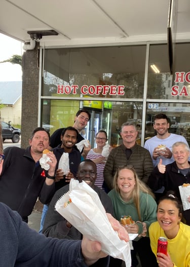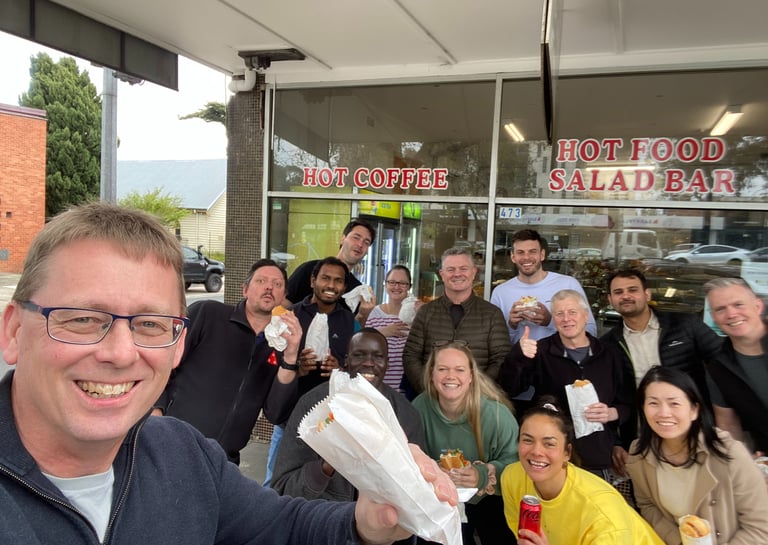 For this website I could’ve bought some stock photos or had some professional photos taken of me casually laughing. I’ve gone in a different direction: work photos off my phone. They’re not schmick, but in the words of Con and Trace from The Castle, ‘They’re full of culture…chockers.’